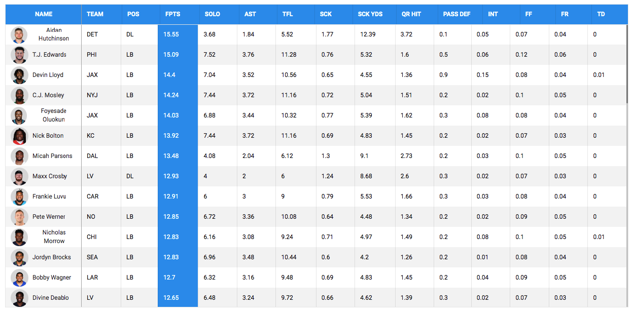 Hutchinson featured in his team’s 48-45 win over the Seattle Seahawks. In the game, Hutchinson had five tackles to his name and secured 15.55 fantasy points for his team manager. This is the first time that Hutchinson has featured in the top five. Next up for Hutchinson and the Lions are the New England Patriots.